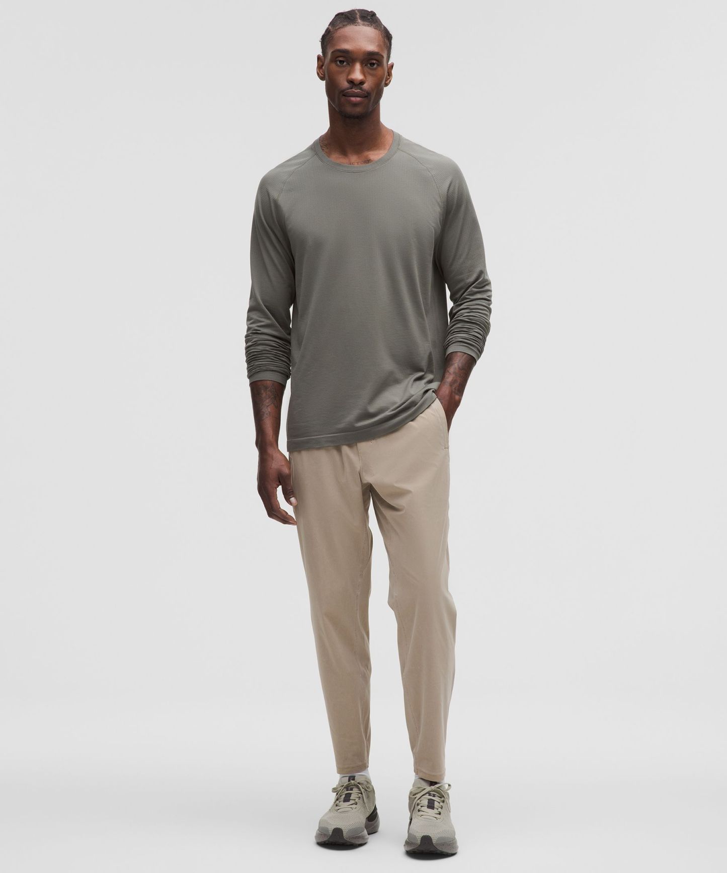 - Streamlined fit gives glutes and thighs breathing room, then tapers to hem
