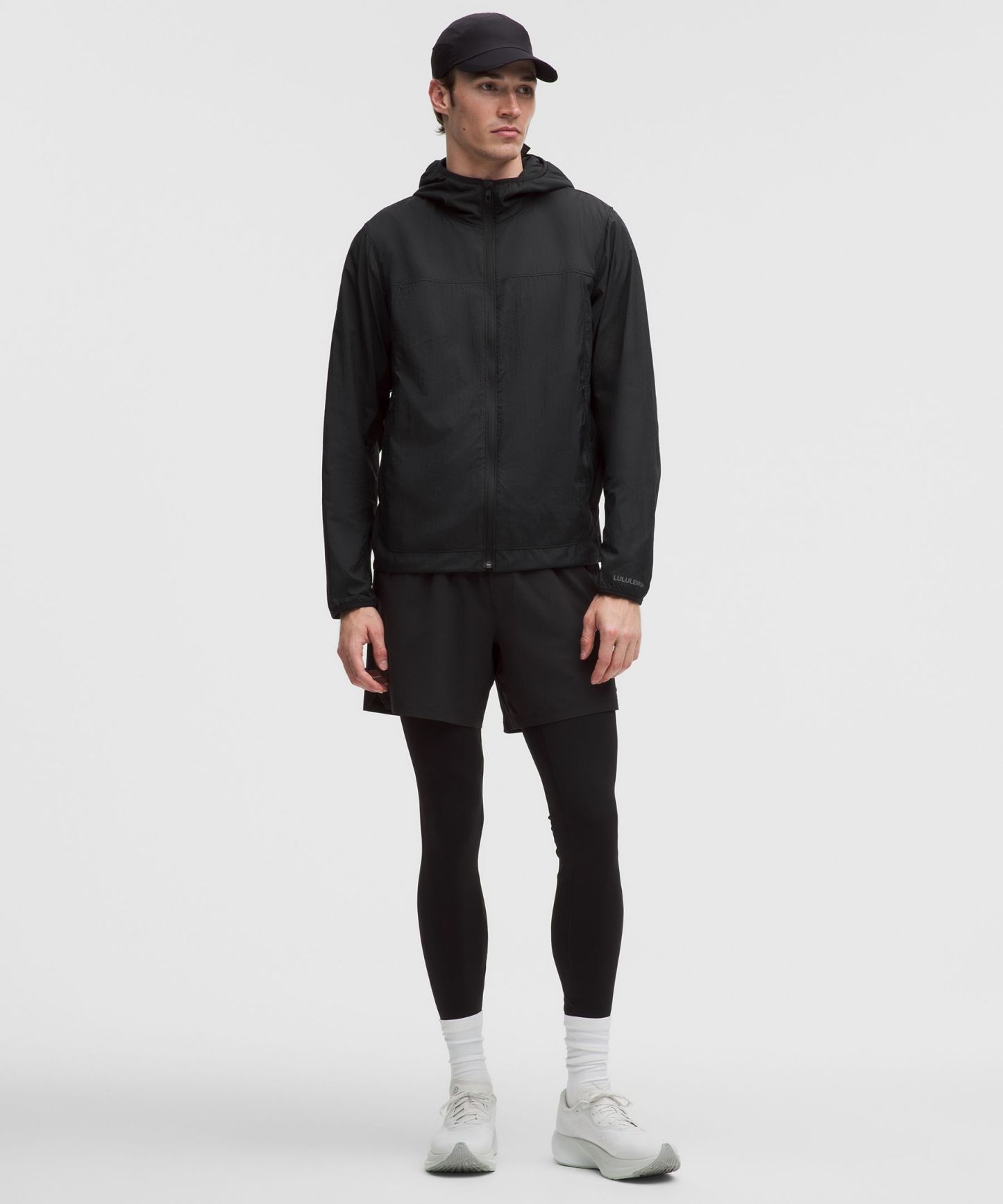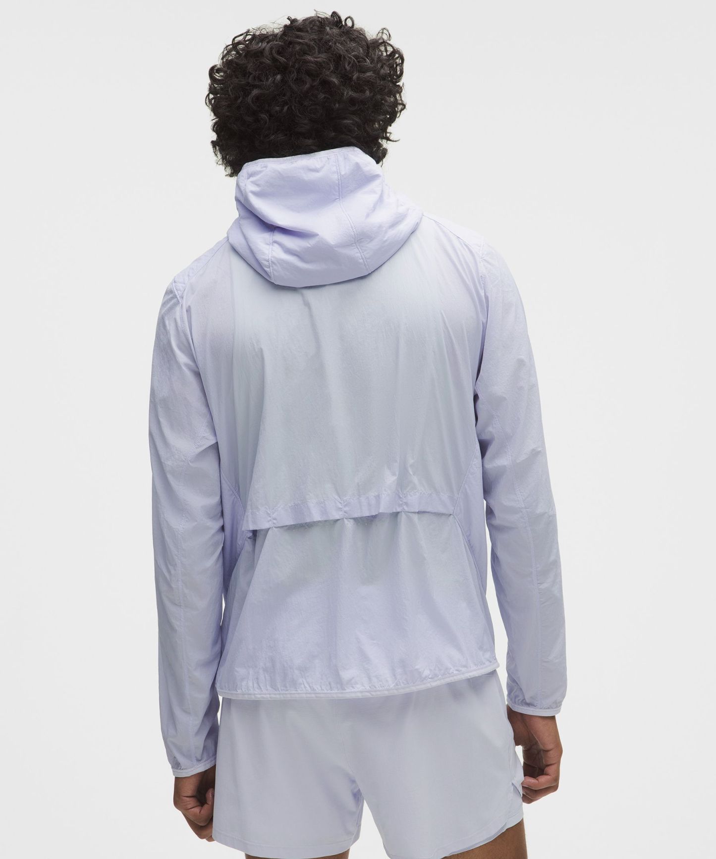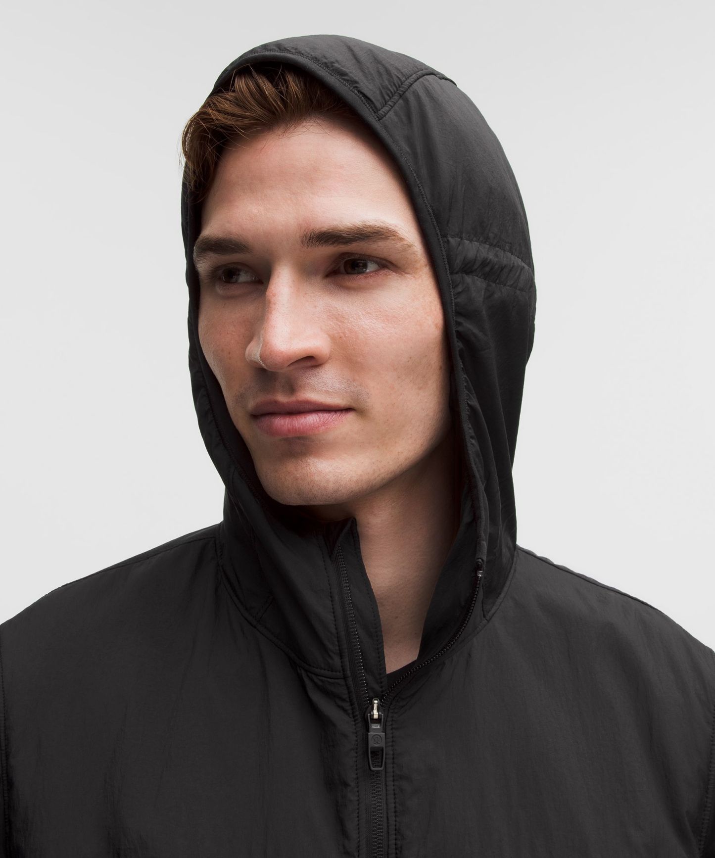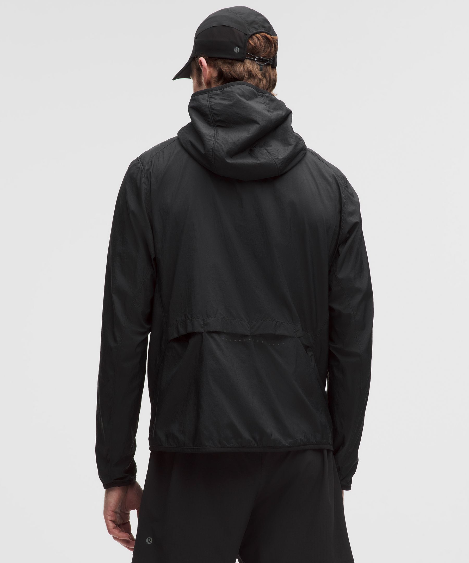- Close-fitting hood cinches at the back
