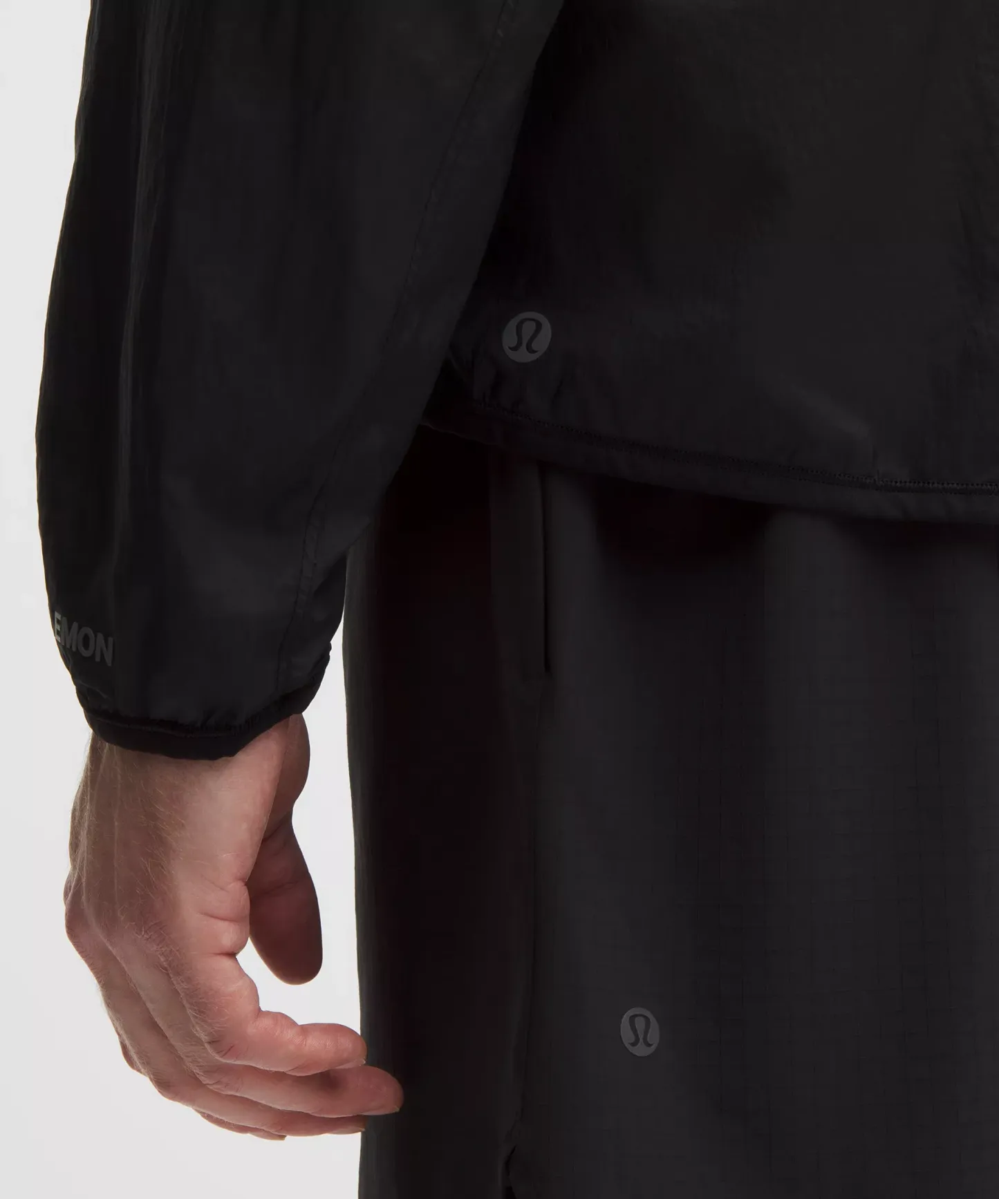 - Zippered hand pockets with hidden phone sleeve