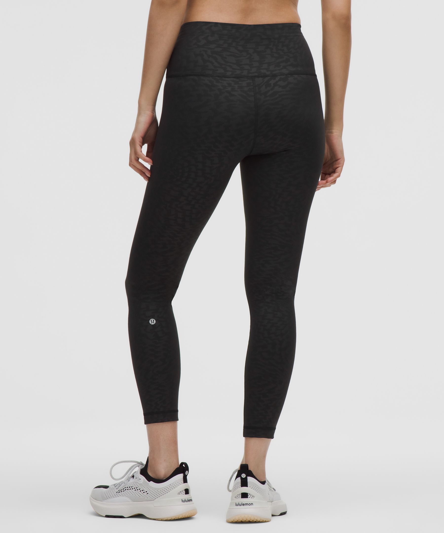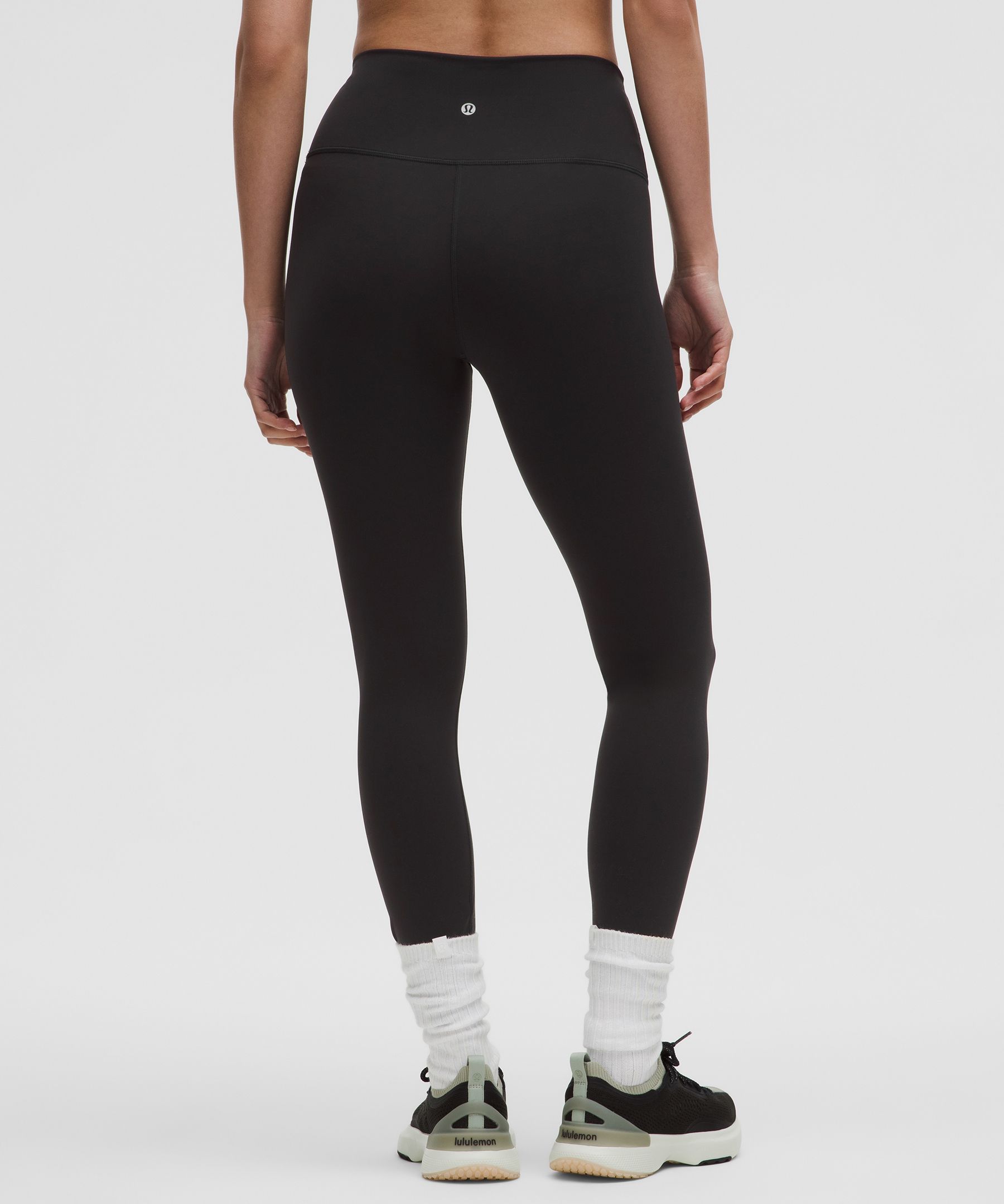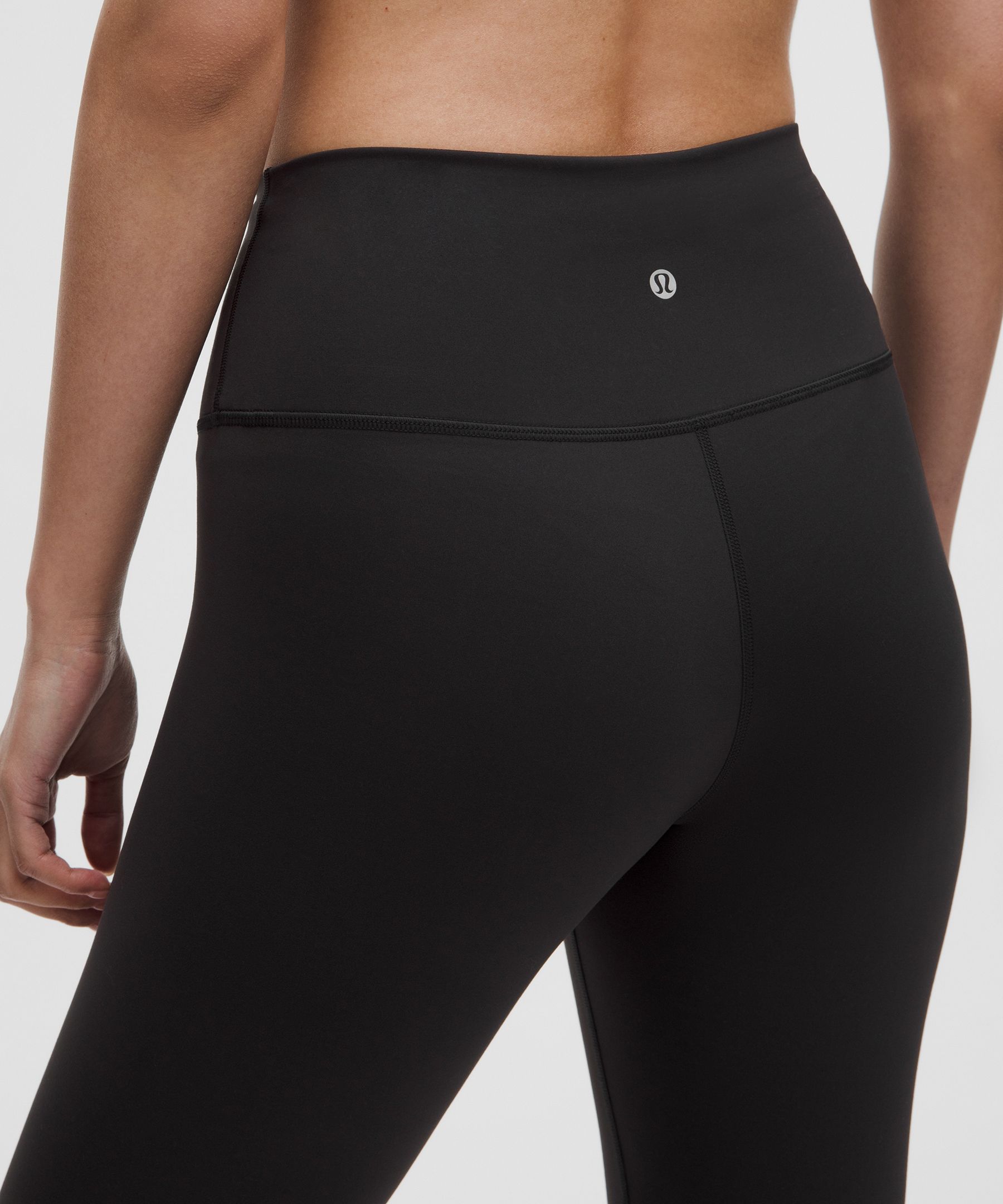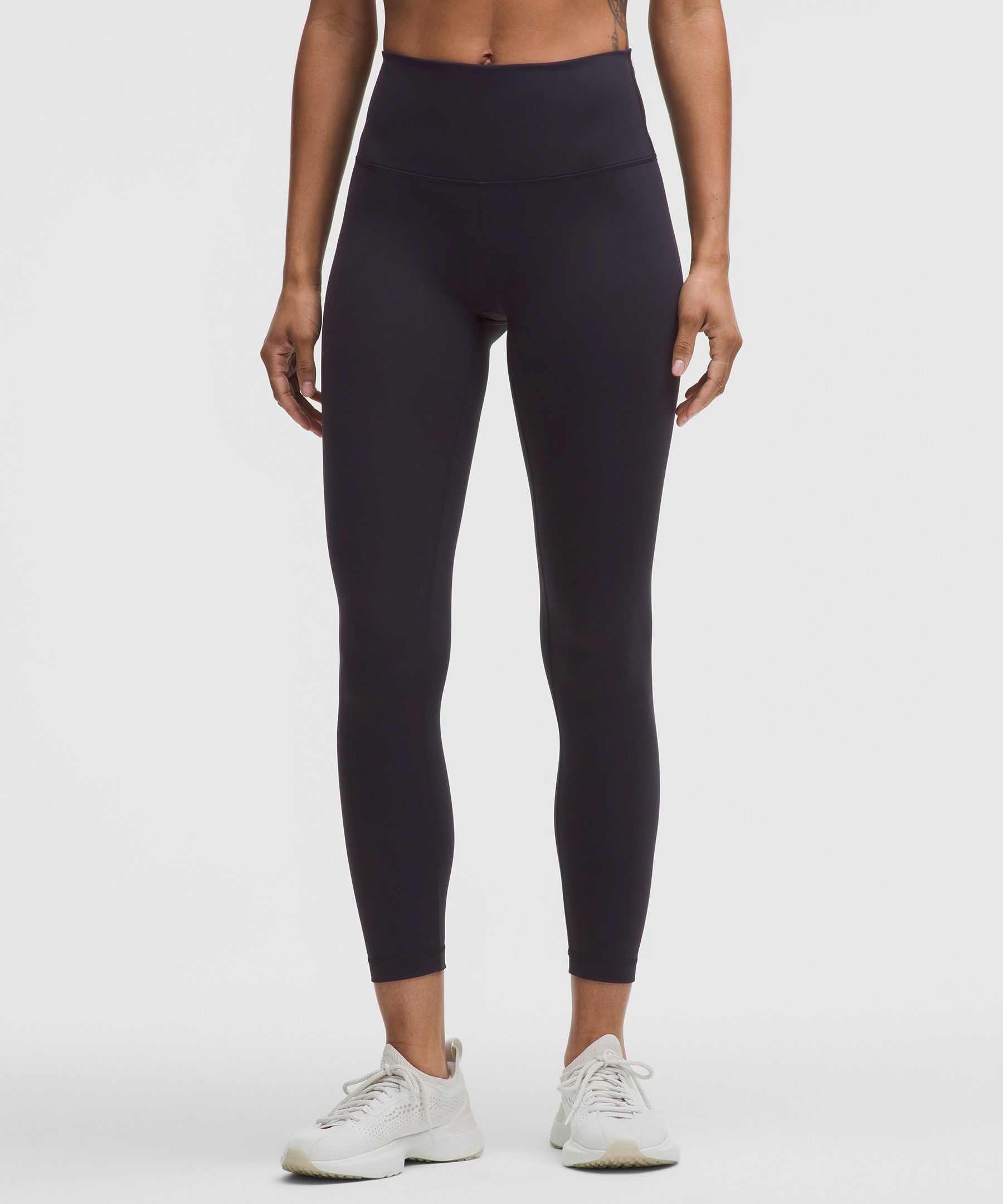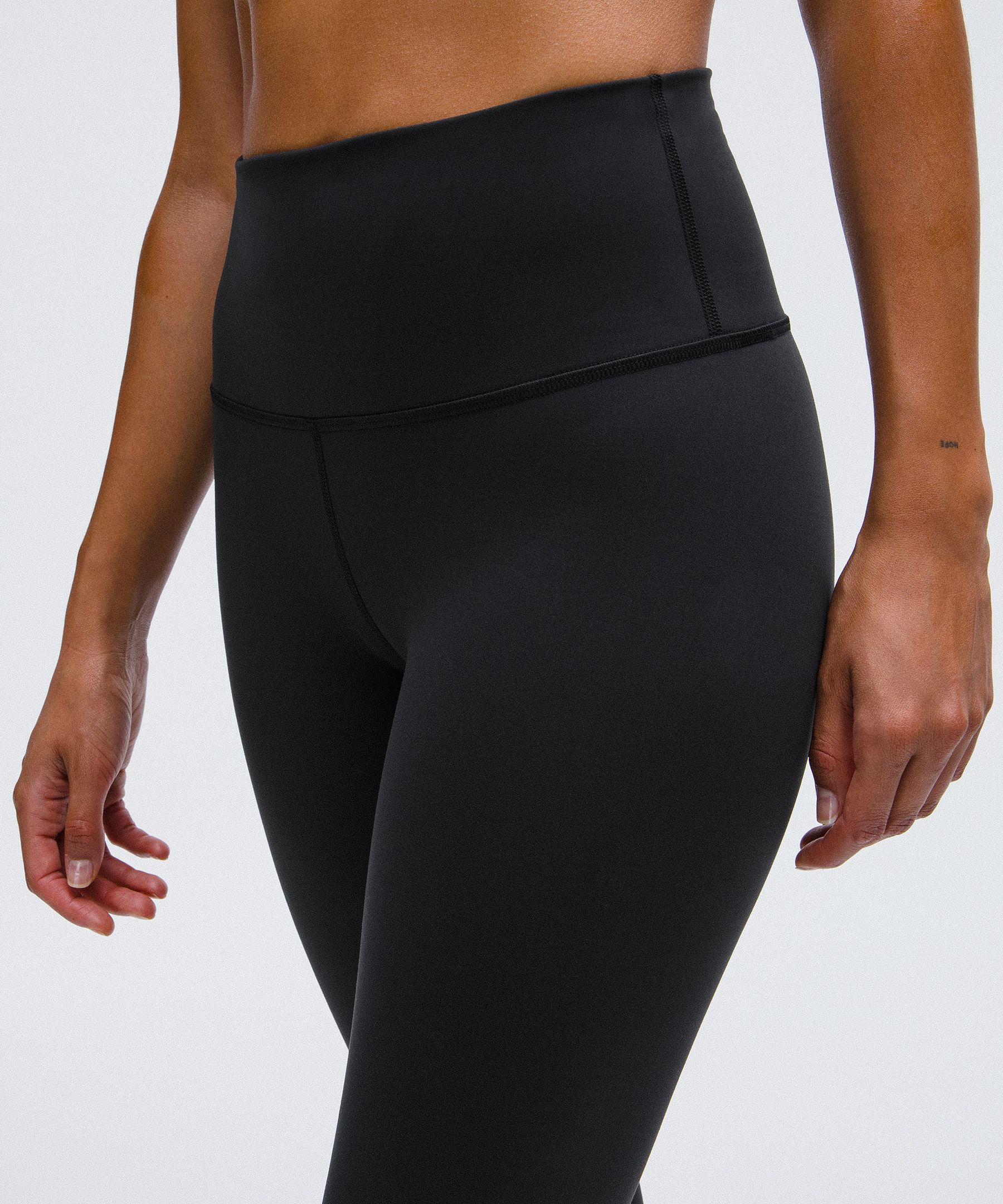 A high-rise waistband keeps you covered as you lift and squat. Our 25" length is intended to sit above your ankle.