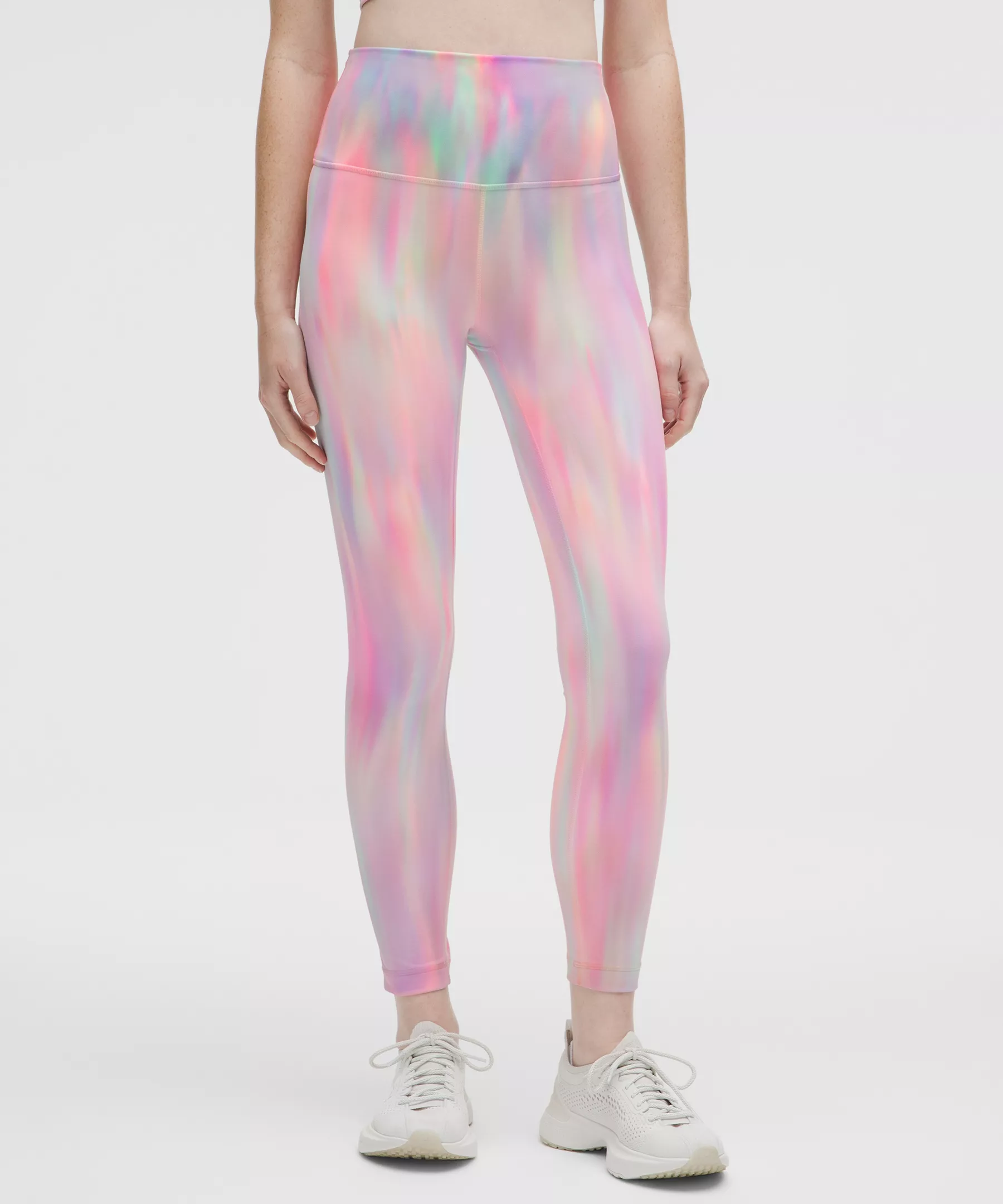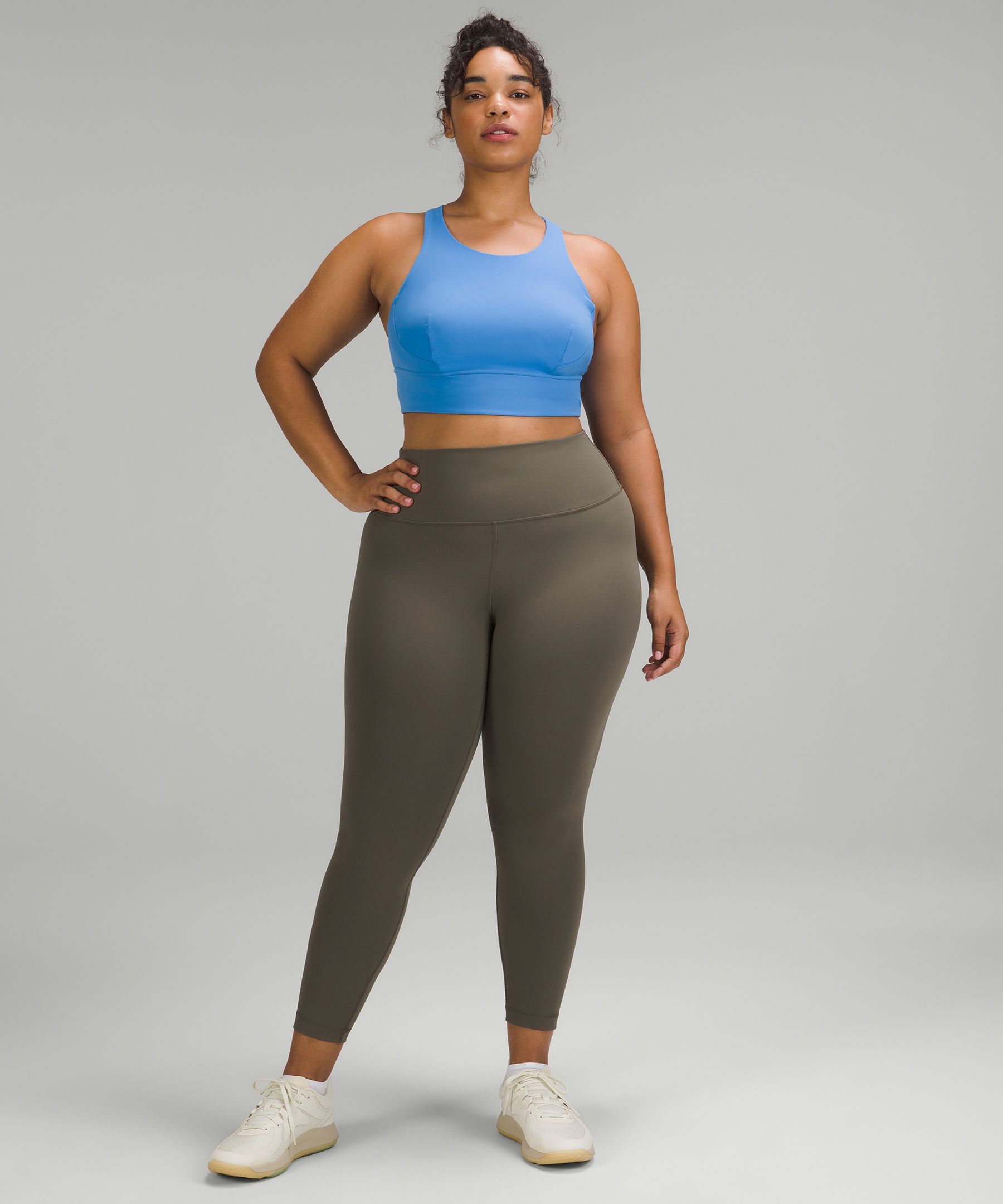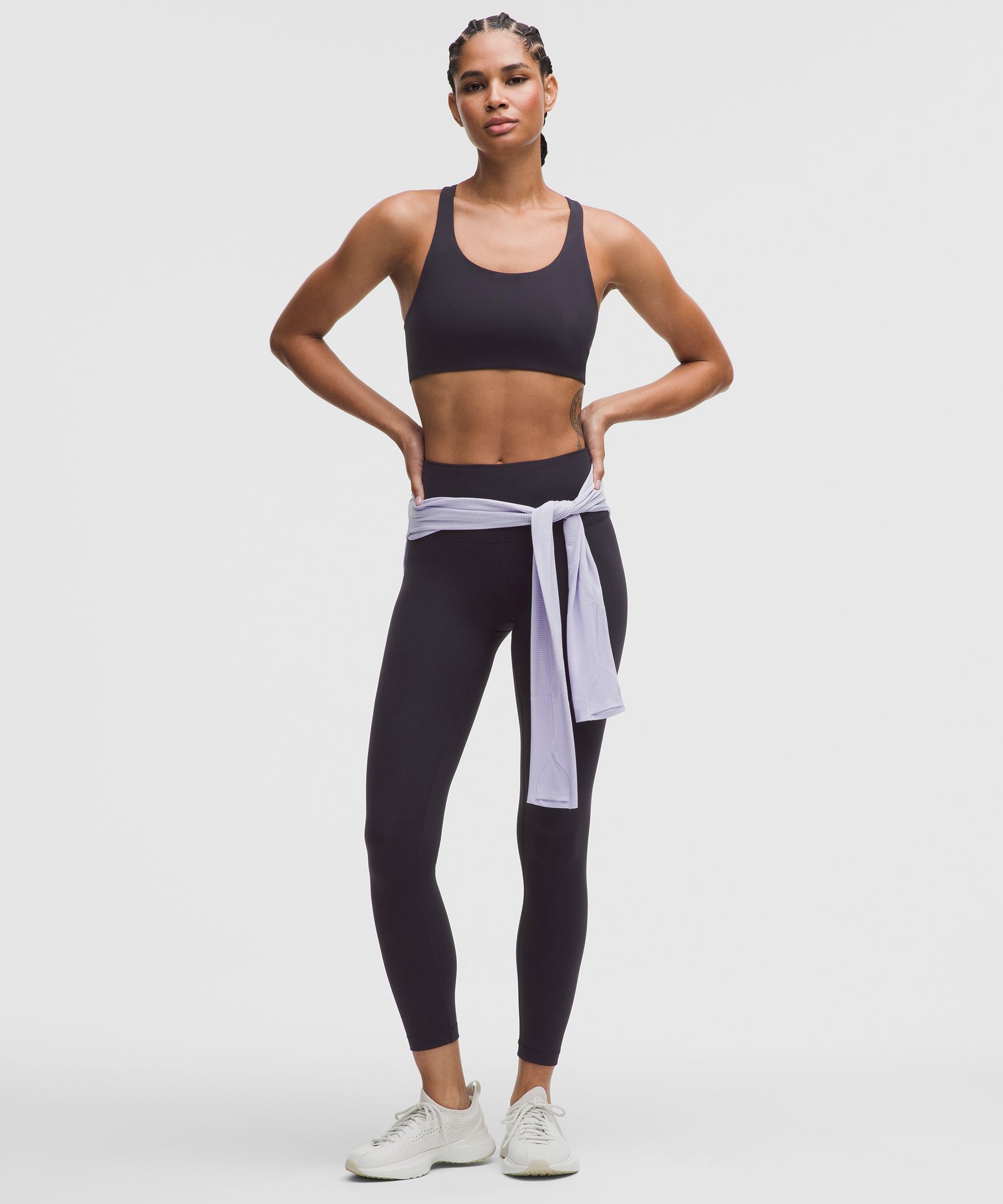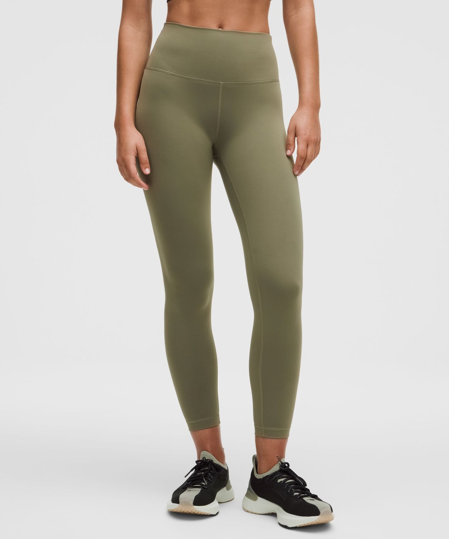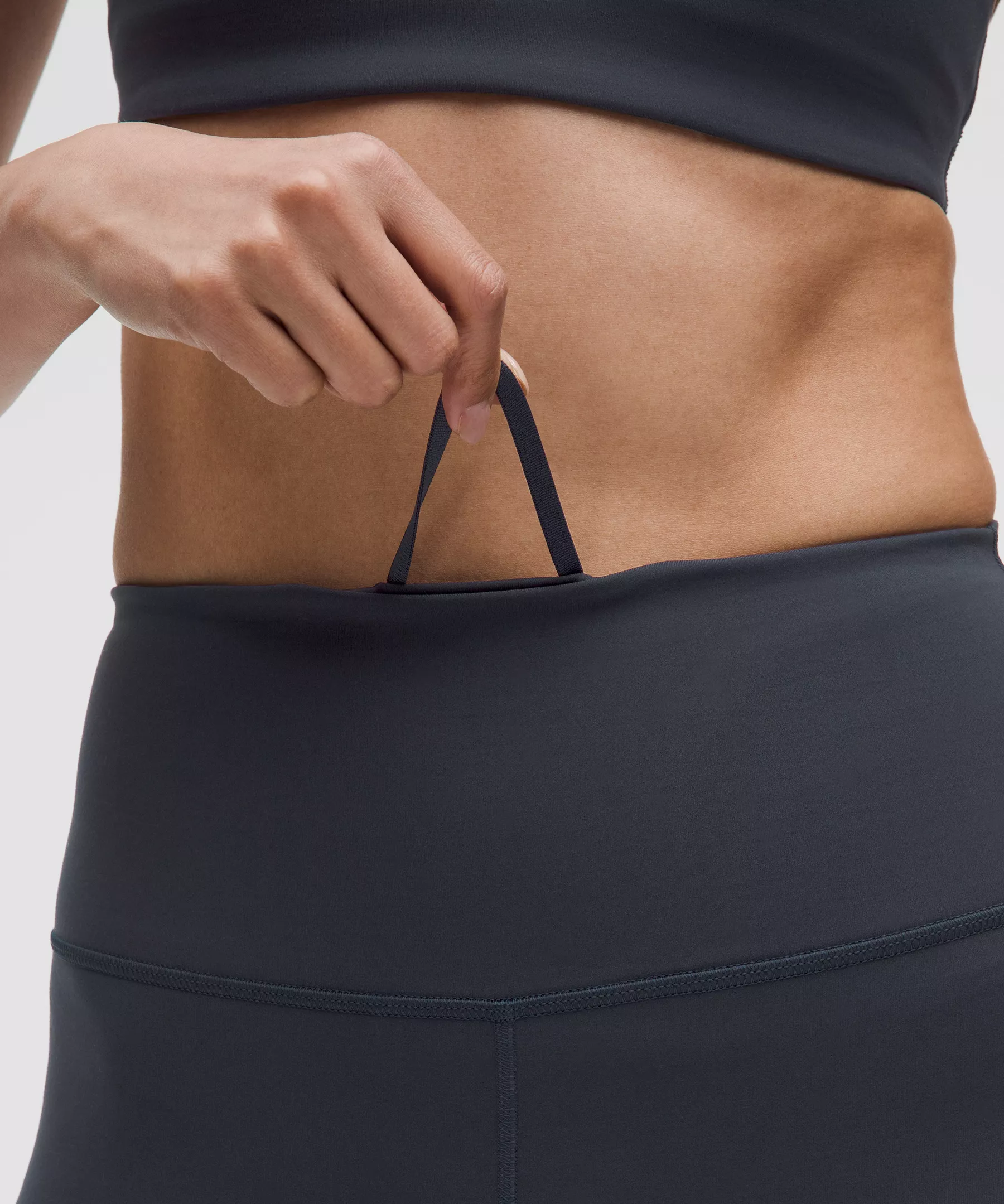 A high-rise waistband keeps you covered as you lift and squat. Our 25" length is intended to sit above your ankle.