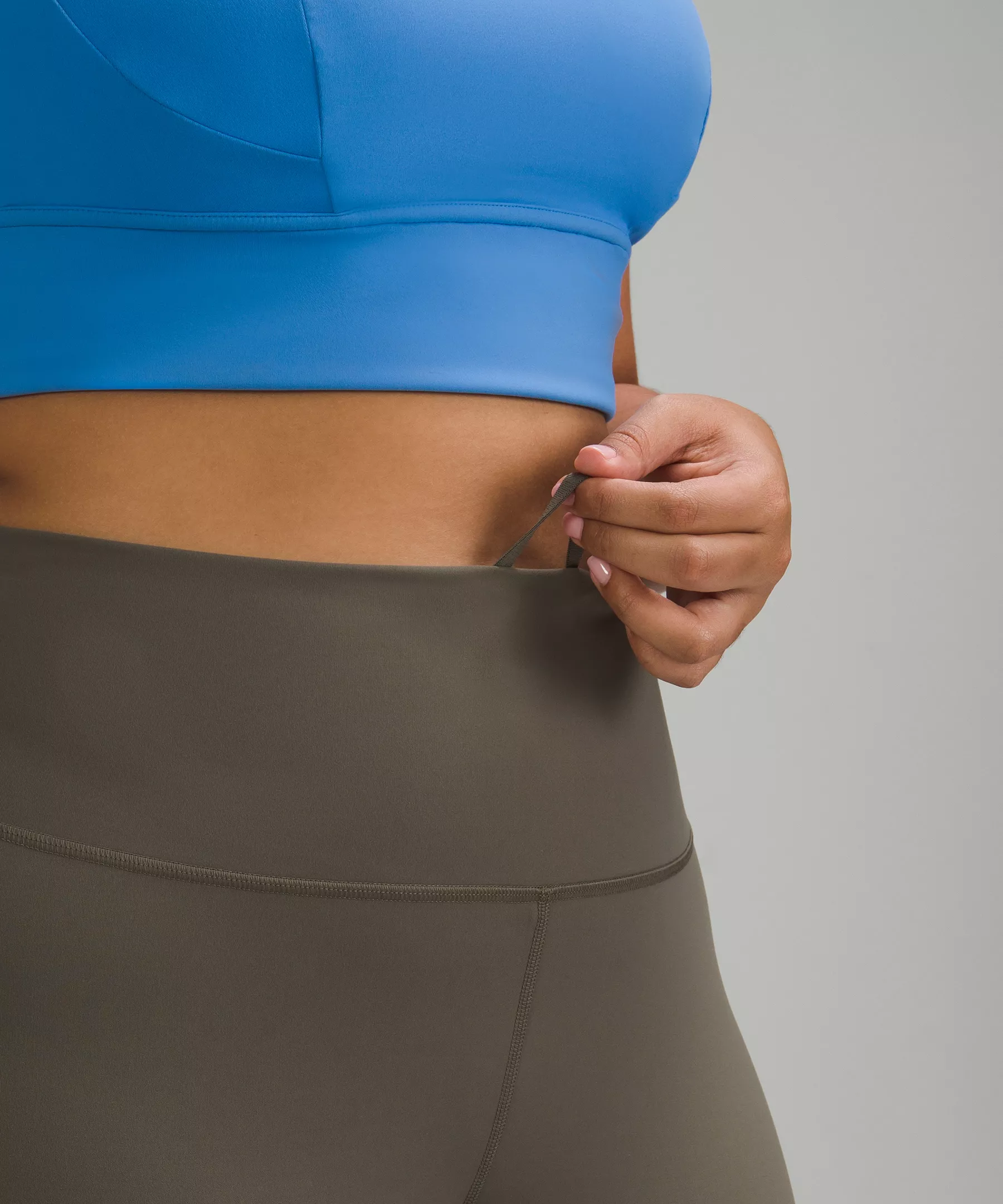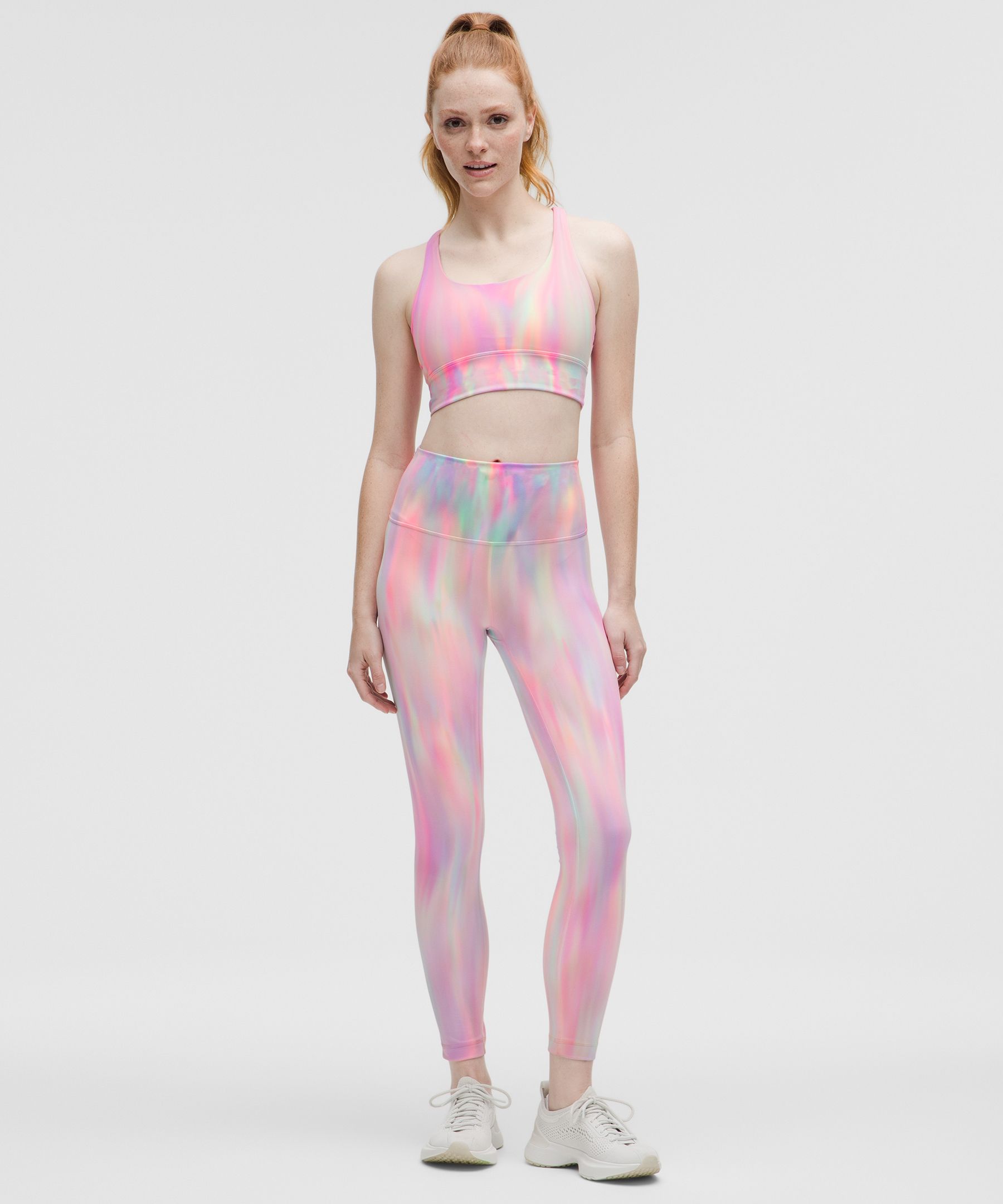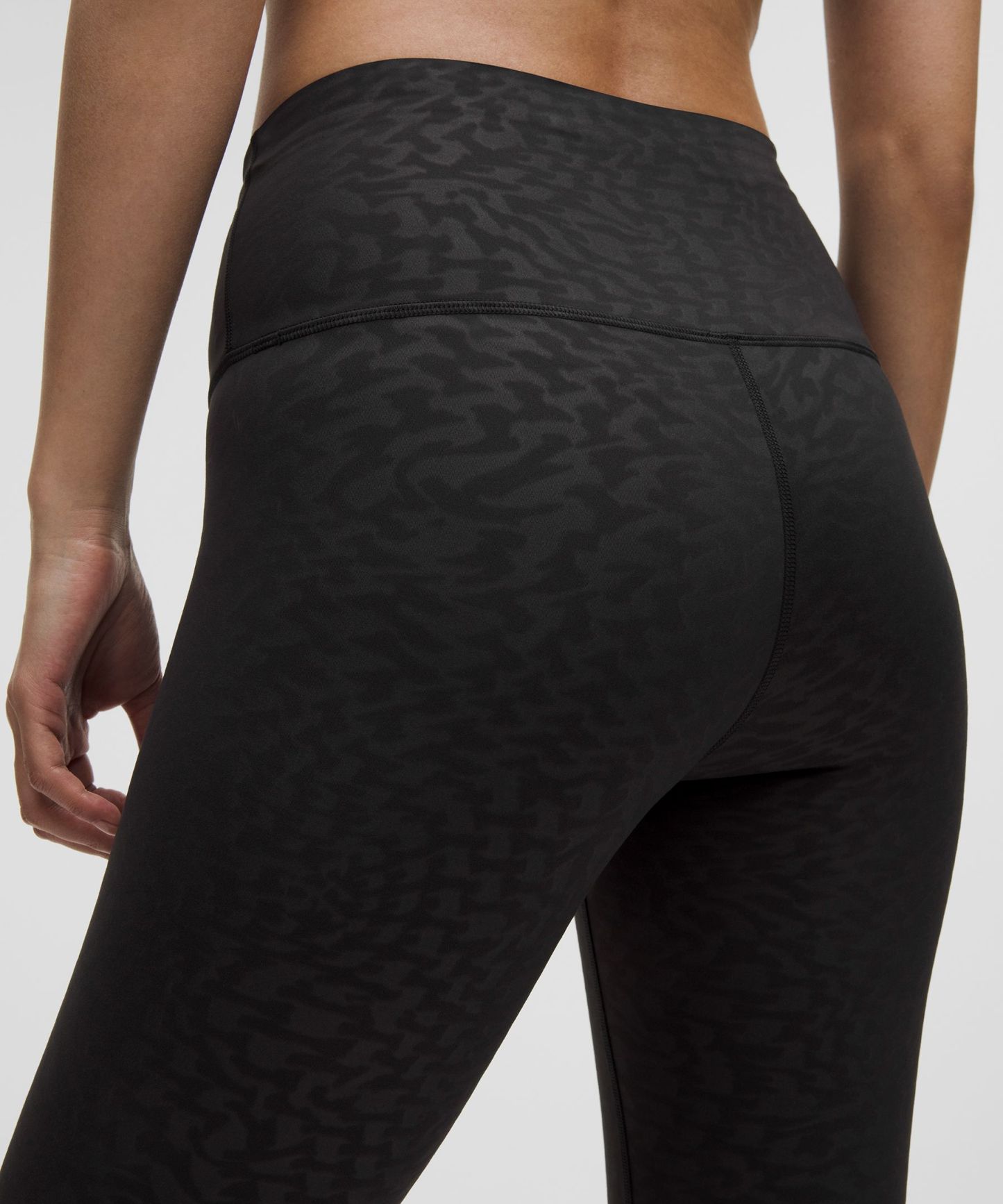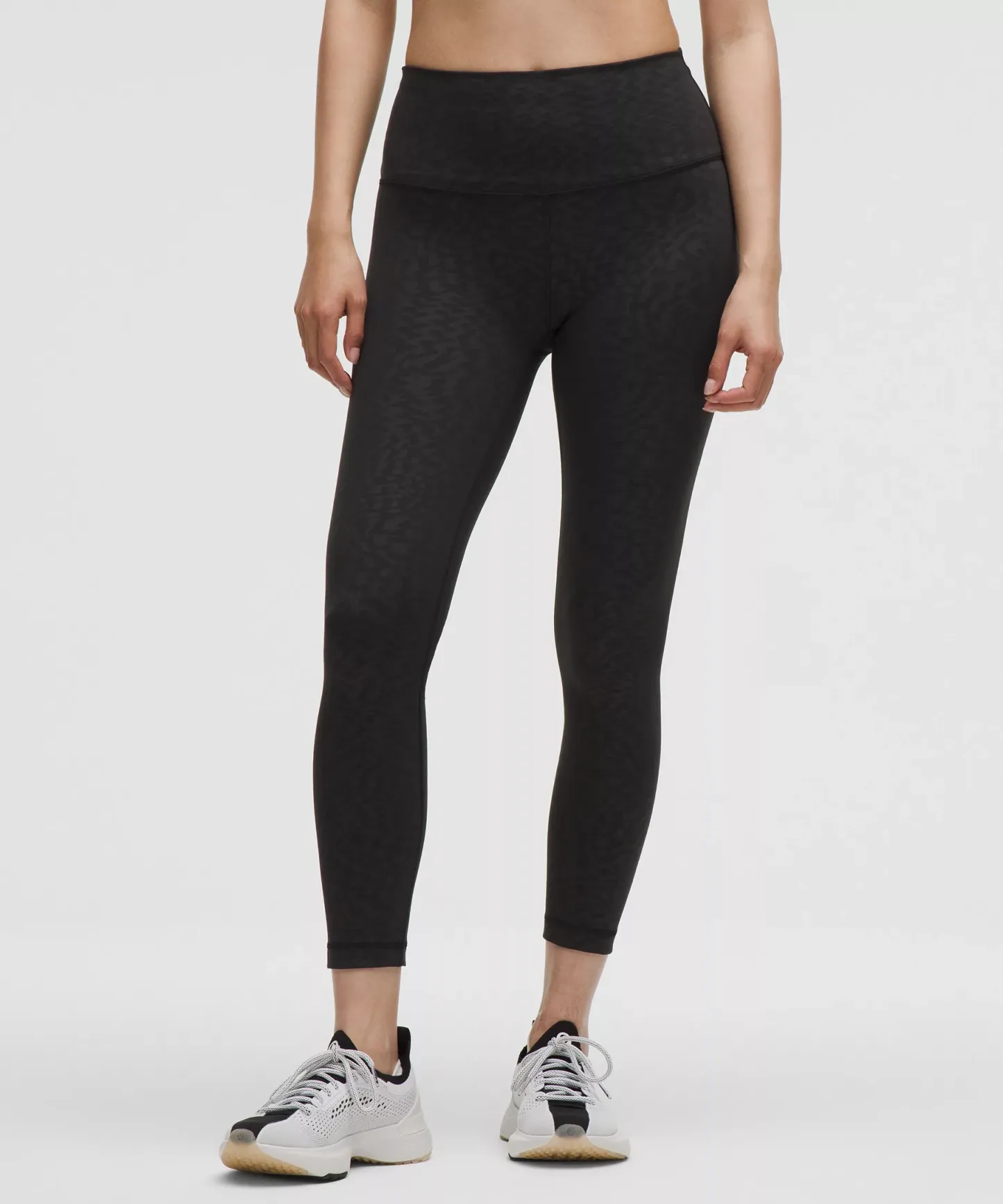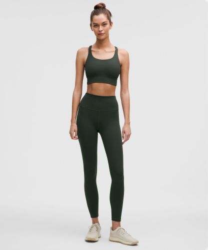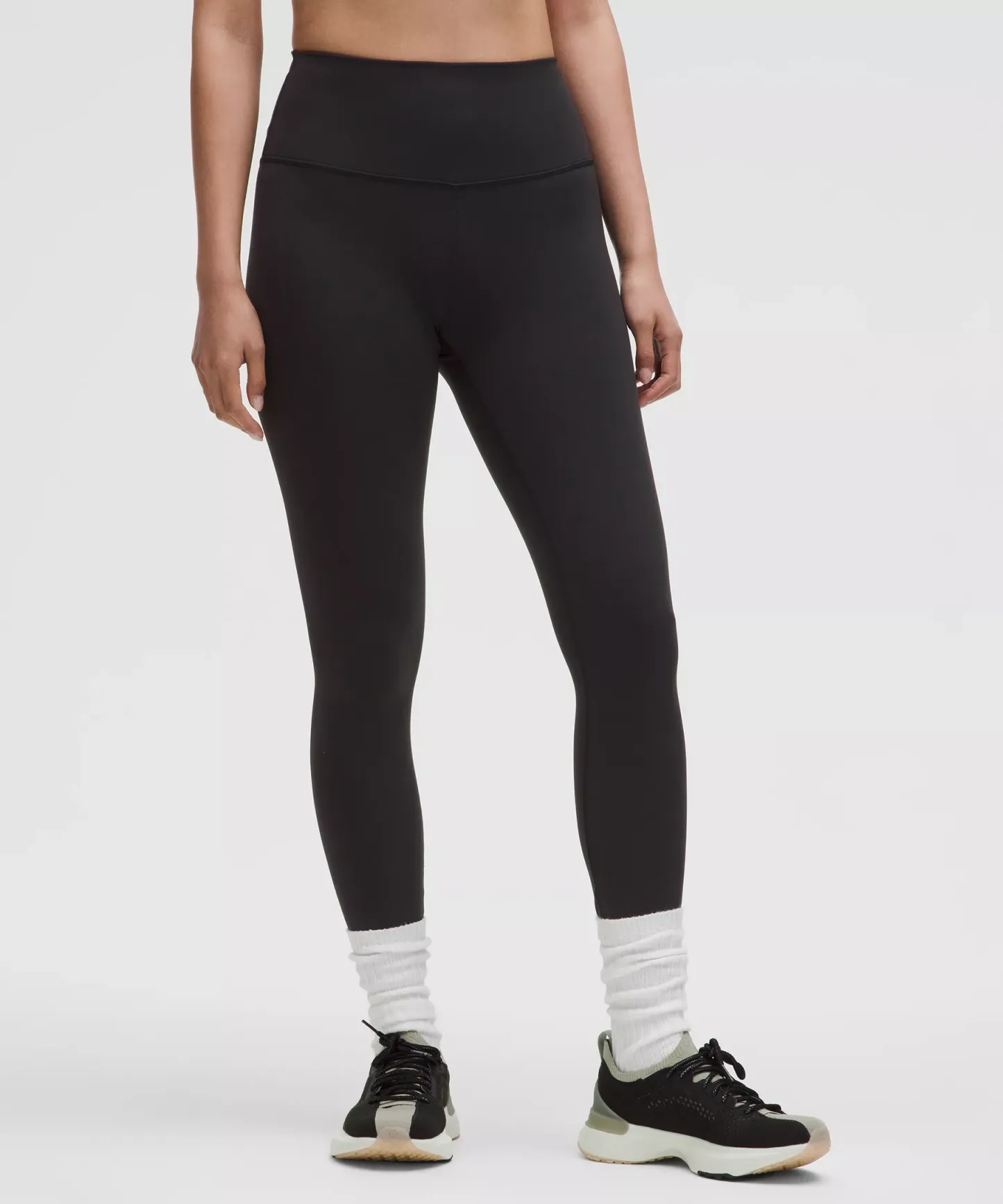 A high-rise waistband keeps you covered as you lift and squat. Our 25" length is intended to sit above your ankle.