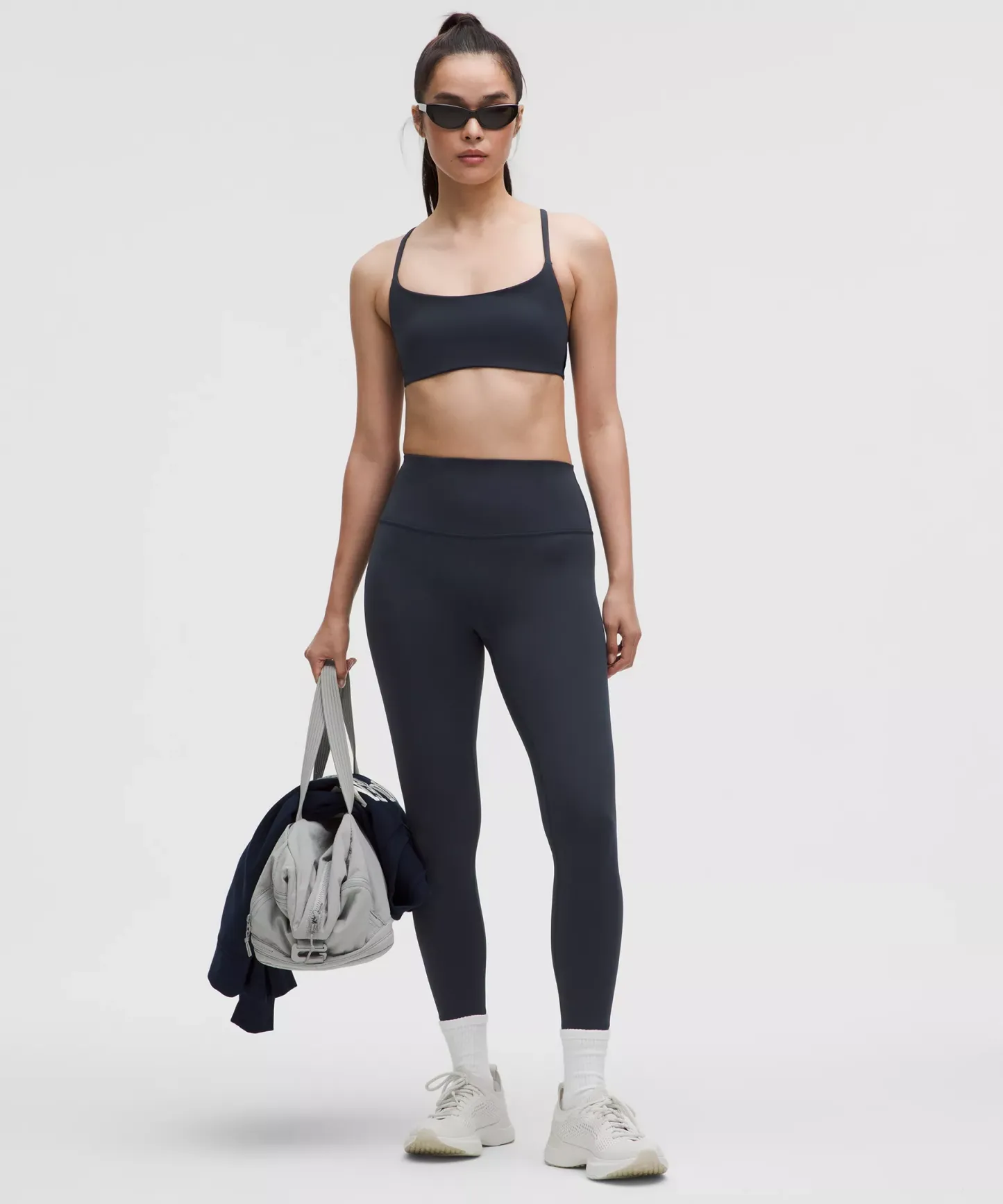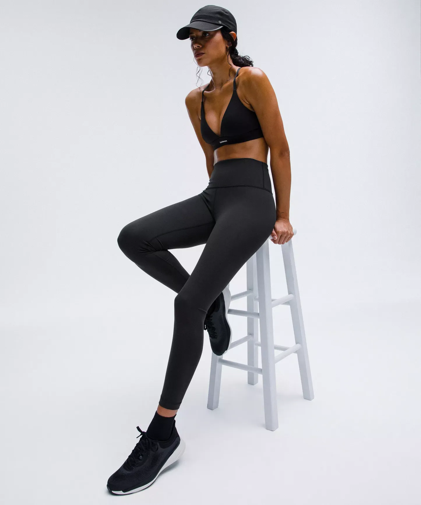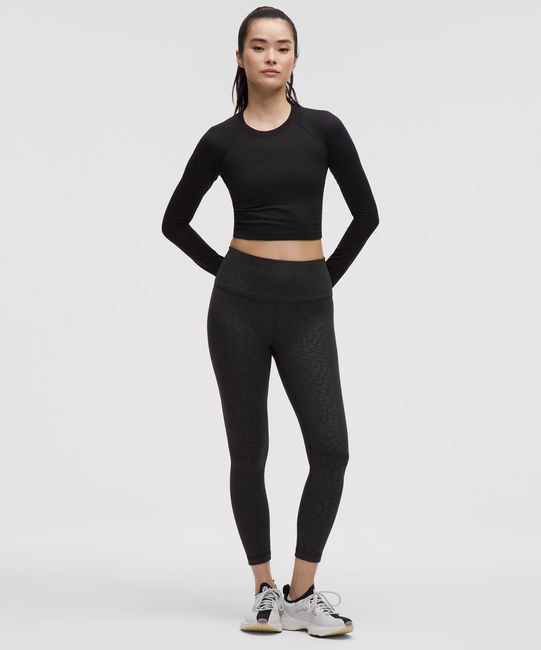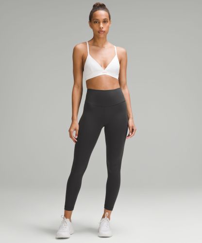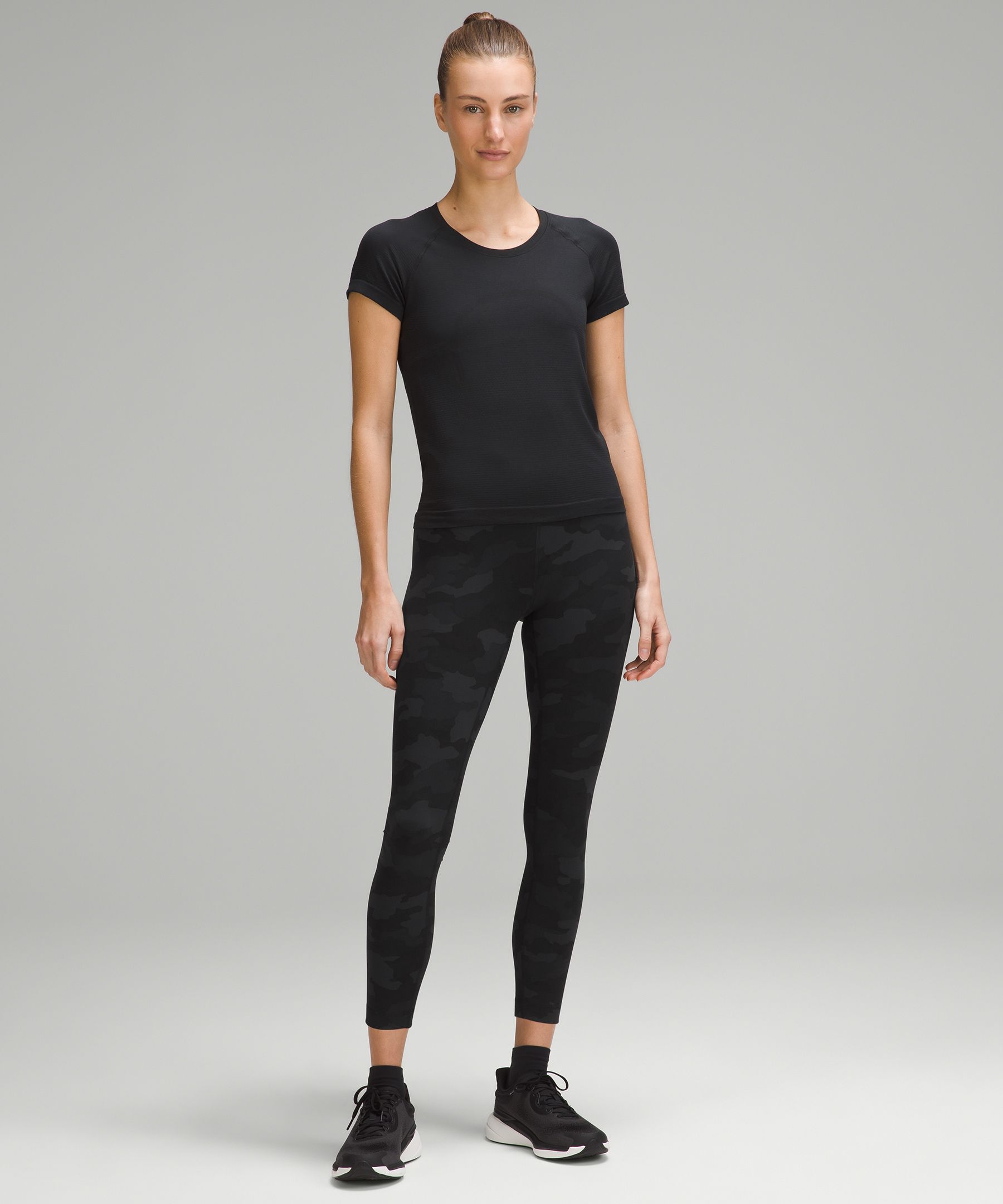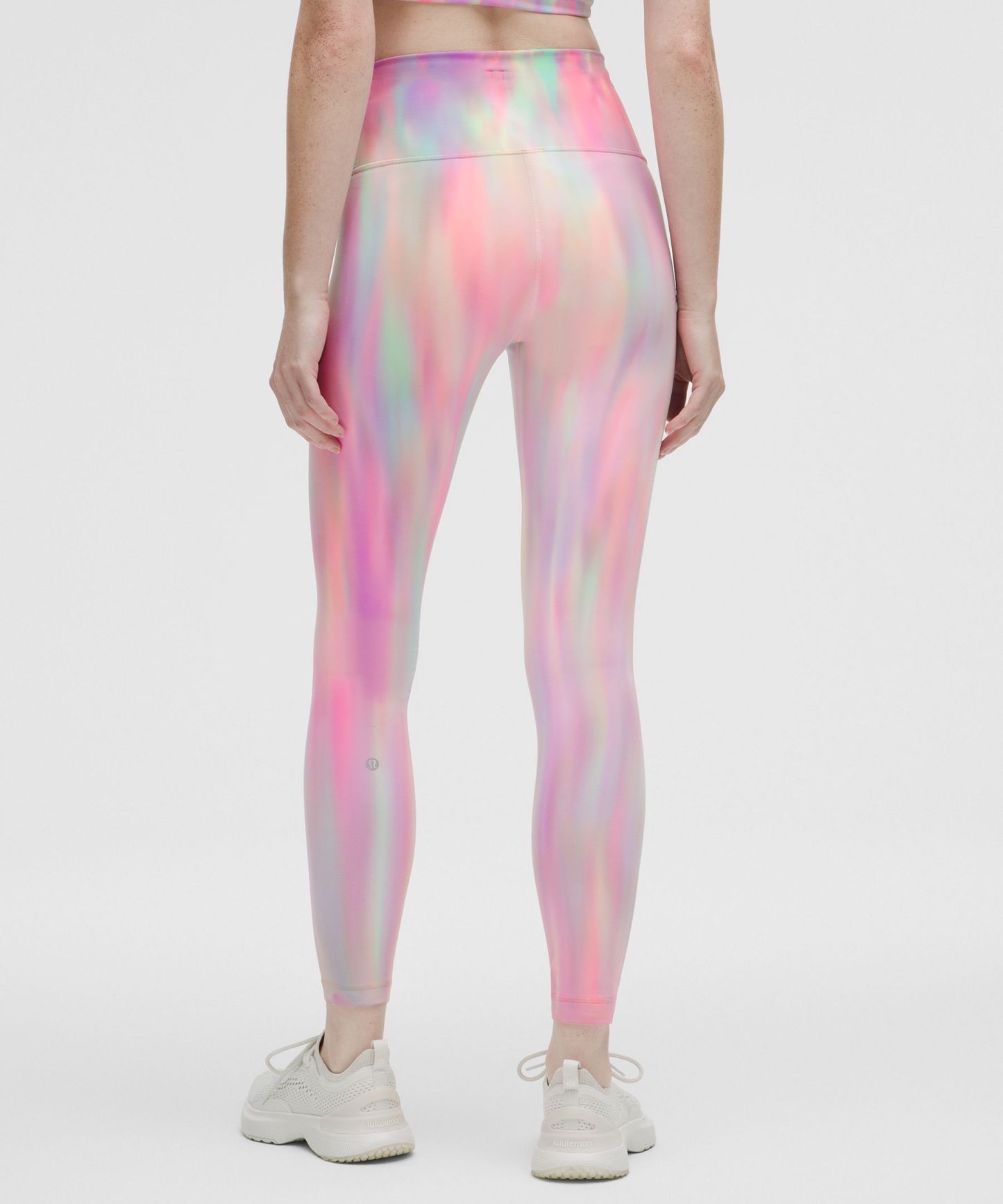 A high-rise waistband keeps you covered as you lift and squat. Our 25" length is intended to sit above your ankle.