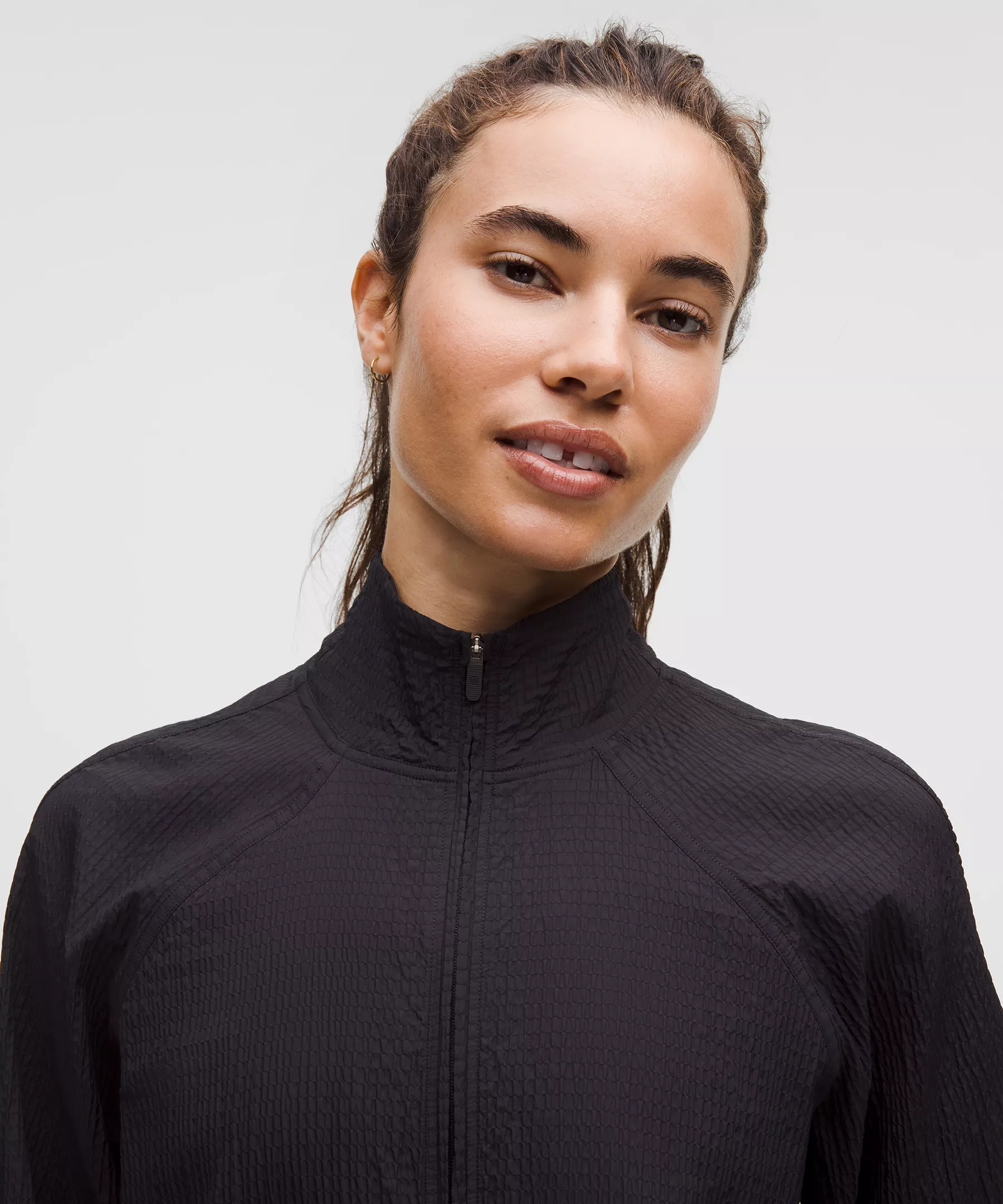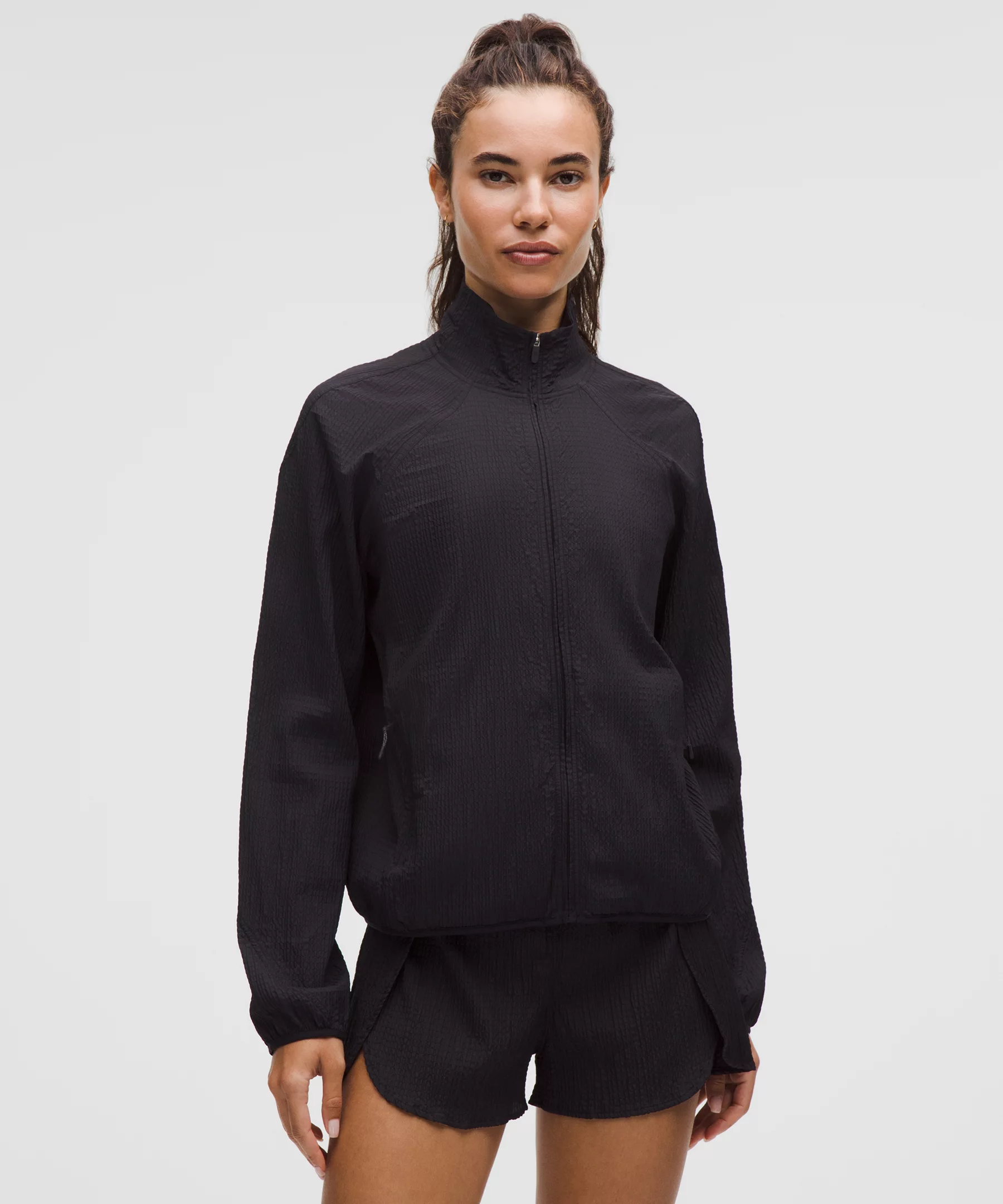 - Zippered hand pockets with hidden phone sleeve