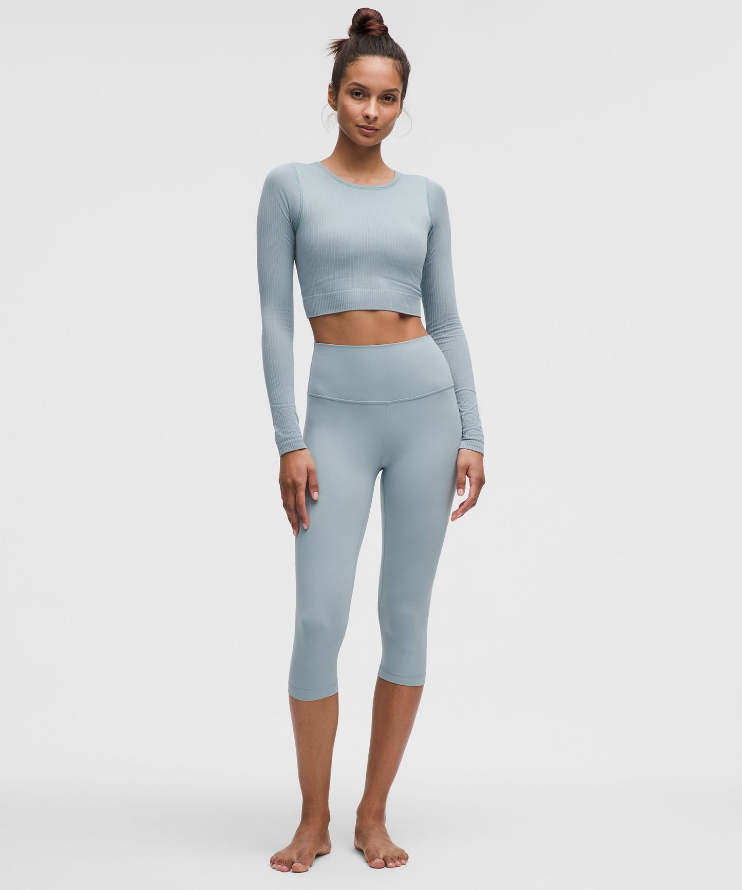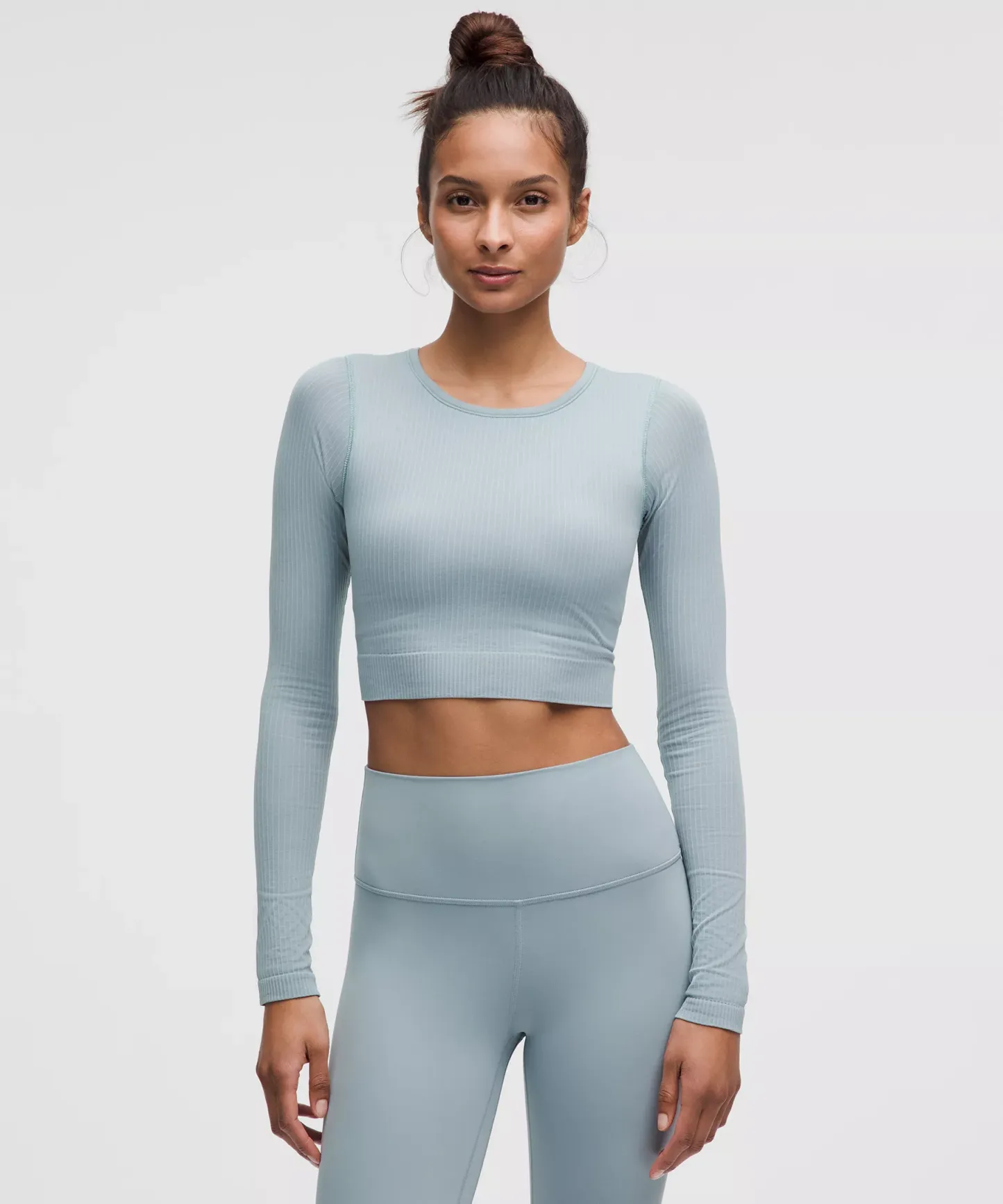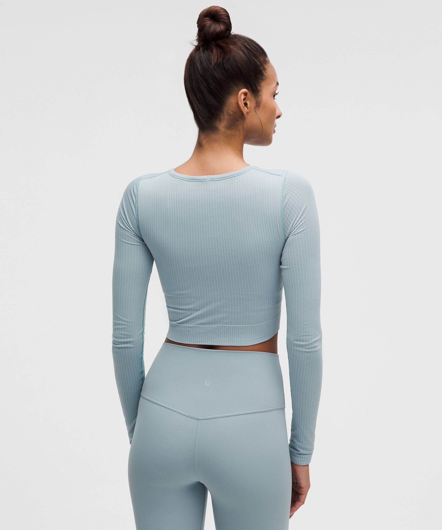 - Cropped length is cut above the waist—perfect with high-rise pants
