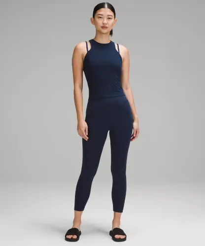 Comfortable wide waistband won't dig in, while the updated curved seamlines give a dynamic, modern look.