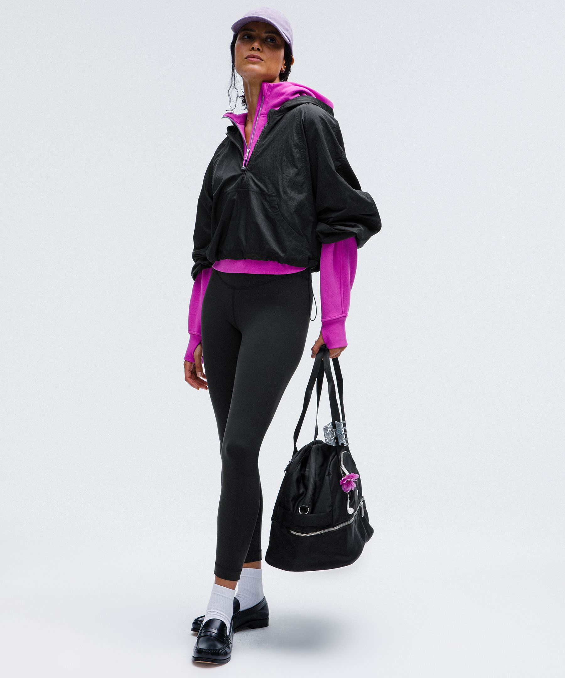 Tuck your key or card in the flat back drop-in pocket on the waistband for distraction-free storage.